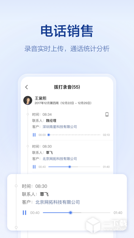 2、智能外呼中心:记录员工电话录音、拨打数据等,电销情况一目了然