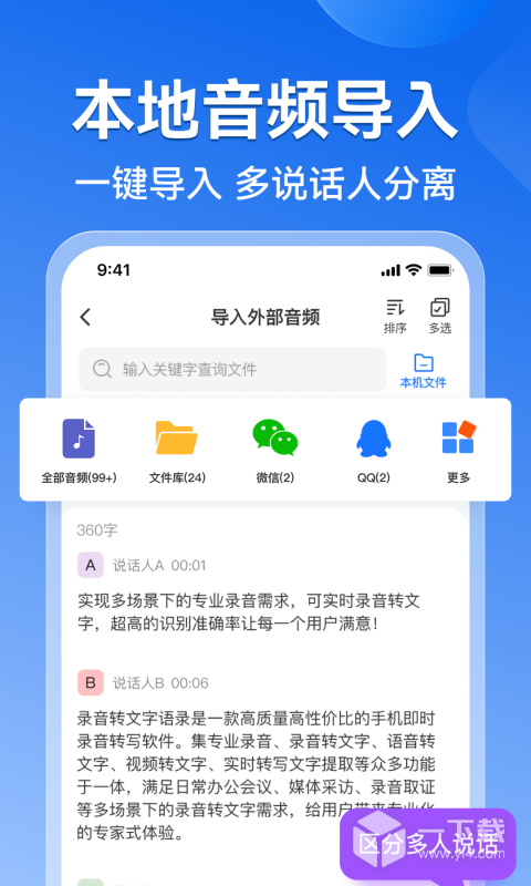 2、 音频转文字:在线录音转文字,准确快速,提高办公或学习效率,方便省心;